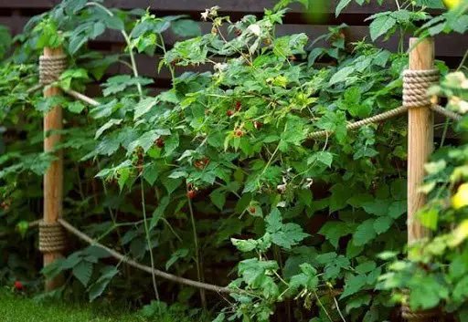Якщо за кущами малини не доглядати, вони заглушаються. В результаті нижні частини лишаються без світла і врожаю, а ягоди, які вже є, брудняться, падають на землю, їх незручно збирати. Тому, варто підв’язувати малину за допомогою шпалер. Робити це можна вже в перший же рік висадки. Це доволі зручно. Так малина отримає більше світла і результат буде кращим.