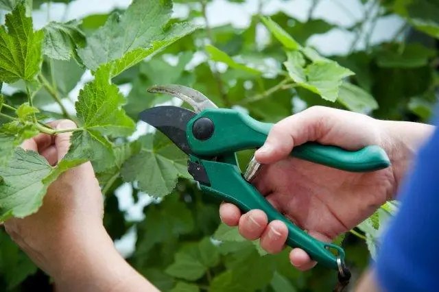 Після того, як були зняті всі ягоди, потрібно провести санітарну обрізку. Для цього слід взяти гострий сікатор. В першу чергу потрібно зрізати хворі пагони: вони товсті, мають наліт і бурий колір. Цвісти в наступному році вони не будуть. Потрібно зрізати гілки, які розташовуються занадто низько, а також ті пагони, що ростуть всередині куща. Вони тільки заважають йому і роблять його густим. Однорічні пагони, які є дуже потужними потрібно вкоротити на 8 сантиметрів.